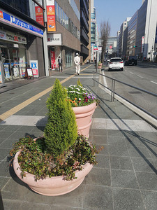 In this plan, the approach shifted to pedestrian-friendly. Without changing the street width of 27 meters, the roadways are reduced from five lanes to three, then each sidewalk on both sides is widened from 5.5 meters to 7.25 meters, and new bicycle lanes of 1.5 meters are secured on both sides. Wider sidewalks create the space to improve pedestrian amenities, such as placing benches for pedestrians to rest. The parking spaces for cars, motorcycles, and bicycles have moved underground around Hakata Station for passersby mobility and townscape aesthetic. This street is also designated as an urban landscape formation area in Fukuoka City Landscape Plan enacted in 2012.